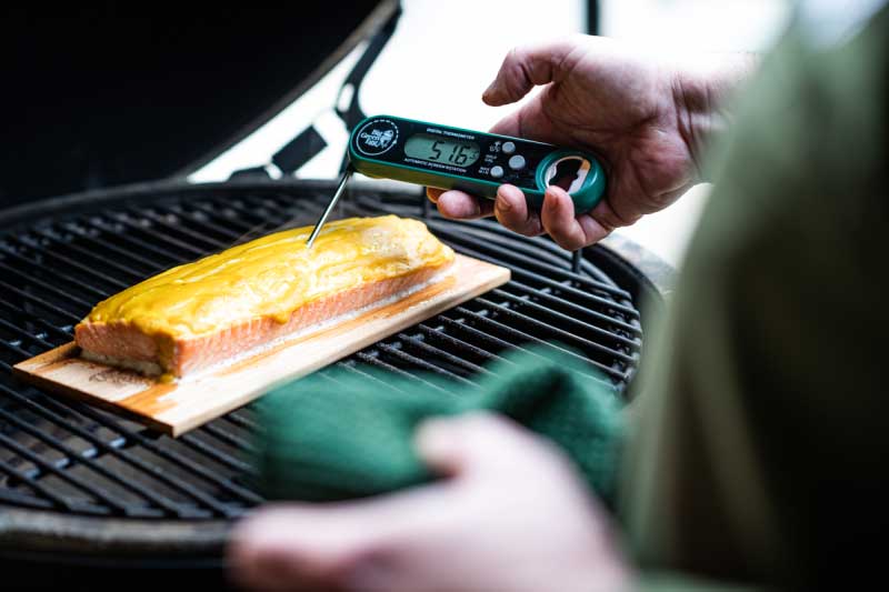 EGGija jaoks on kõige olulisem õige ajastus. Big Green Eggi ülikiire lugemiga termomeeter on sinu salarelv võitluses pooltoore või üleküpsenud roogadega. Sa saad nelja sekundiga teada looma-, kala- või linnuliha täpse temperatuuri.