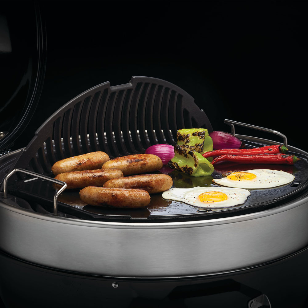 Napoleoni kahepoolne portselanemailitud malmist grilliplaat muudab söekeraamilise grilli kiiresti hommikusöögi- või tänavatoidupunktiks. Plaadi tasapinnalisel küljel saad küpsetada peekonit, mune, kartulit, sibulat ja köögivilju, teisel poolel on võimalik liha ja kala tugevalt pruunistada. Plaat asetub otse 22-tollise (55,9 cm) söegrilli resti peale.