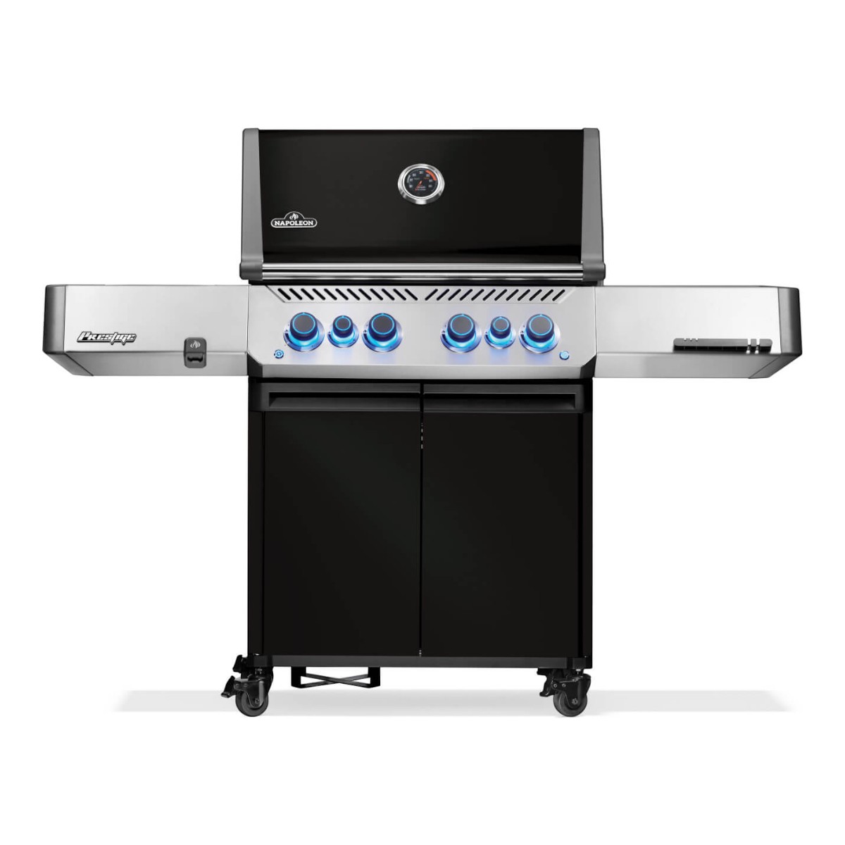 Must Prestige 500 propaaniga gaasigrill infrapuna külg- ja tagumise põletiga pakub võimsat ja mitmekülgset grillimiskogemust modernses disainis. Suurem varrasgrillimise põleti ning infrapuna pruunistamisjaam külgpõletil annavad parema jõudluse nii kiireks pruunistamiseks kui ka ühtlaseks küpsetuseks. LED-valgustusega juhtnupud muudavad õhtuse grillimise mugavaks ning SafetyGlow funktsioon lisab turvalisust, kuna nupud helendavad gaasi kasutamisel punaselt. Peidetav soojendusrest hoiab grilli korras ja varjatud tööriistakonksud annavad juurde ettevalmistuspinda. Prestige 500 sobib neile, kes hindavad tugevat jõudlust, nutikaid lahendusi ja puhtaid jooni.