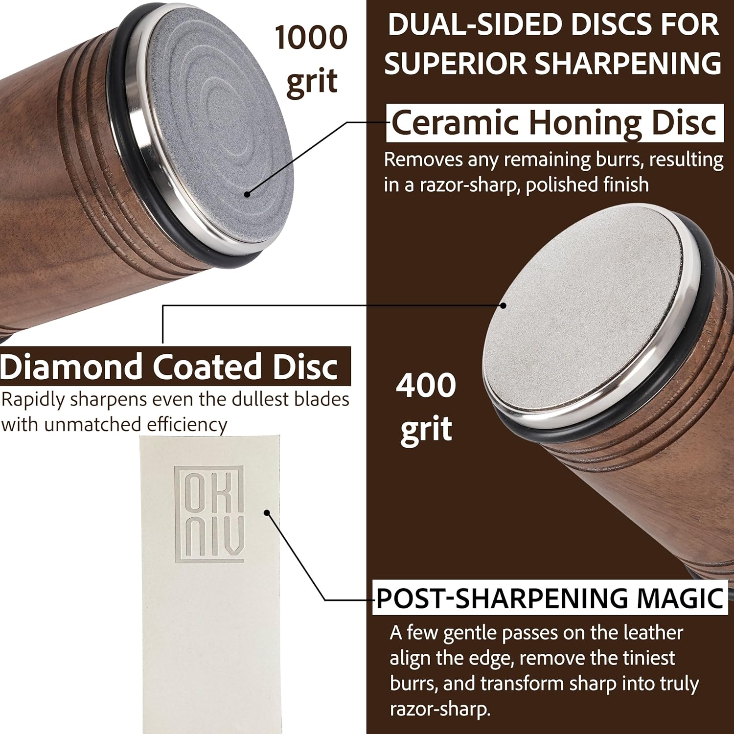 Rullnoateritaja, mille korpus on valmistatud pähklipuidust. Teritus toimub diamantkattega kettal (karedus 400) ja kahepoolsel keraamilisel viimistluskettal (karedus 1000). Kolmest tugevast magnetist koosnev süsteem ja magnetiline nurgahoidik kahe reguleeritava nurgaga hoiavad tera stabiilselt õiges asendis. Noateritaja alusel on silikoonist libisemisvastased jalgad, mis tagab teritamise ajal parema haarde ja ohutuse.